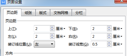 3、页面设置为:页边距上、下、左、右均为2cm,装订线为0.5cm,装订线位置为左,严禁擅自更改。