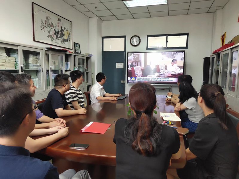 与会全体党员共同观看了央视新闻联播关于“中共中央政治局5月29日下午就建设教育强国进行第五次集体学习”的视频报道,大家一致认为,习近平总书记的重要讲话,立意高远、思想深邃,内涵丰富、振奋人心,是建设中国特色社会主义教育强国的动员令和行动指南。大家纷纷表示要把习近平总书记重要讲话精神转化为全身心投入教育事业的实际行动,坚定理想信念,坚持精心从教,坚守三尺讲台,潜心教书育人。