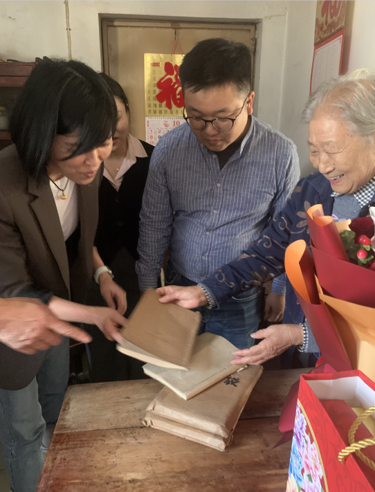 在退休教师魏伯符家中,92岁高龄的老先生精神矍铄,四十多年教龄的他向青年教师讲述了当时从浙江大学回通教书的历程,拿出当年在浙江大学的备课笔记和自编的教学研究资料与青年教师分享教研体会,青年教师们为一篇篇整齐的笔记、精美的手绘制图所折服,老先生的敬业精神和严谨的教研态度让人深受教育。深入交流后,魏伯符和夫人主动提出将部分手稿捐献给学院。
