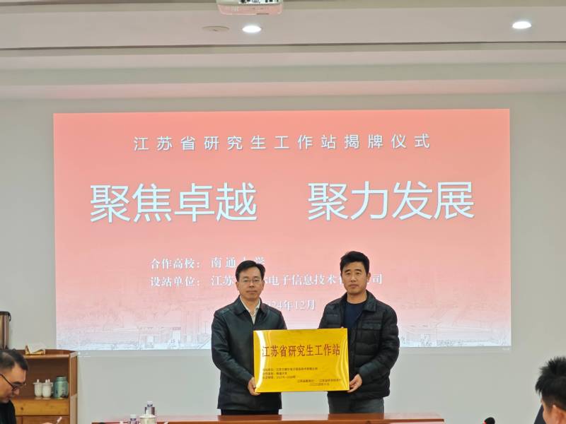 江苏省研究生工作站是江苏省教育厅和科技厅联合认定的产学研合作重要平台,也是高校研究生培养的重要创新实践基地。江苏力德尔电子信息技术有限公司于2024年10月获批江苏省研究生工作站,企业与我校开展了多项横向课题研究,获南通市“揭榜挂帅”项目1项,经费400余万元。