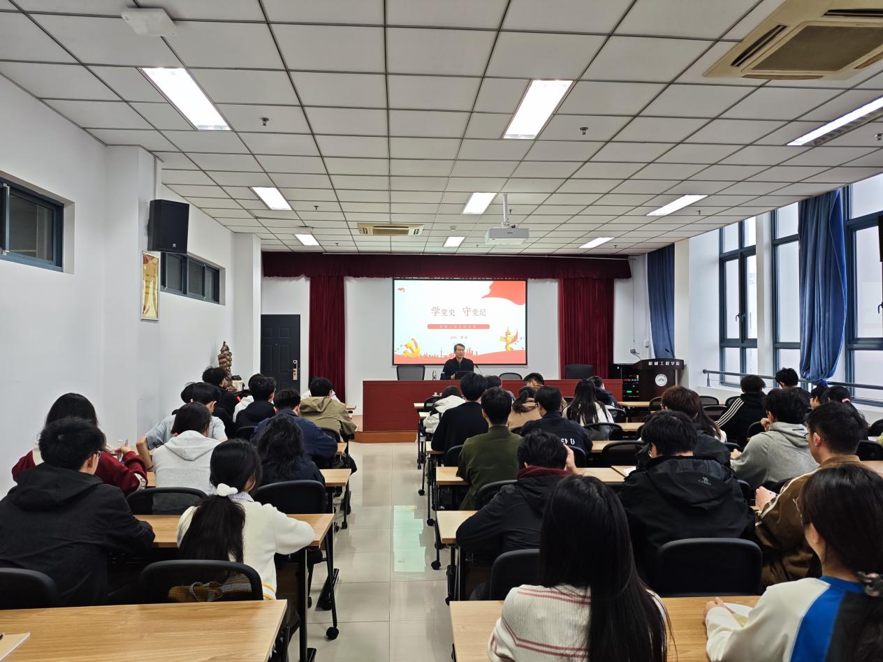 11月7日下午,学院党委委员、测控技术与仪器系主任曹阳以《学党史 守党纪》为题,带领学员系统回顾党的光辉奋斗历程,解读党的纪律规矩体系,强化学员党性修养与纪律意识。