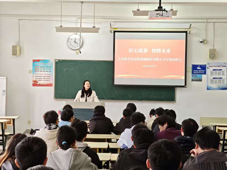 4月23日下午,江苏新美星包装机械股份有限公司专场招聘宣讲会顺利开展,yl23455永利集团毕业班辅导员及部分应届毕业生参加本次活动。